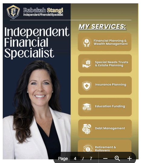 I am Rebekah Stangl, an Independent Financial Specialist, educator, and advocate.