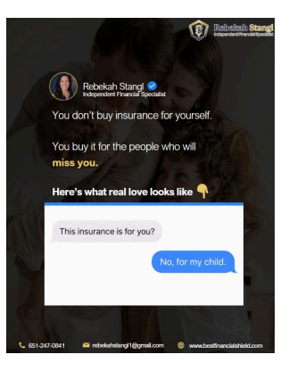 Reach out for a complimentary financial literacy session to see how you can secure the future of your dreams regardless of your income level @ rebekahstangl1@gmail.com or 651-247-0841